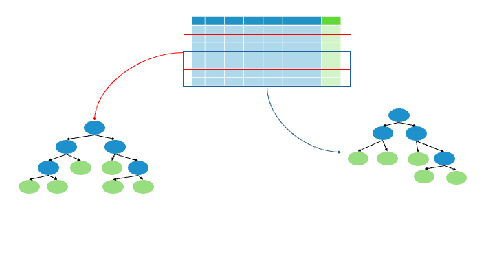 Create a decision tree using that “bootstrapped” dataset. But only use a random subset of variables (columns) at each step.