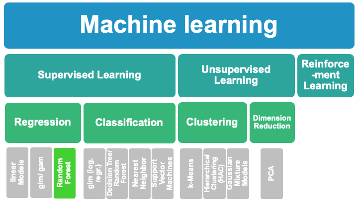RFs can be used for solving regression (numeric target variable) and classification (categorical target variable) problems.
